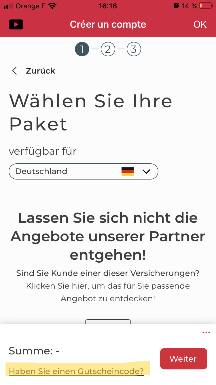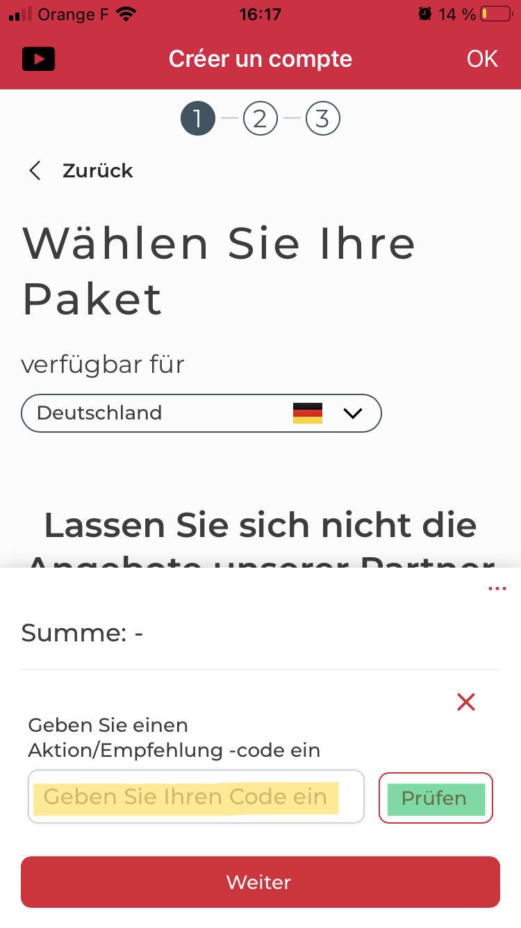 Um Ihren Empfehlungs-Code eingeben zu können, müssen Sie lediglich die Abonnementseite aufrufen.