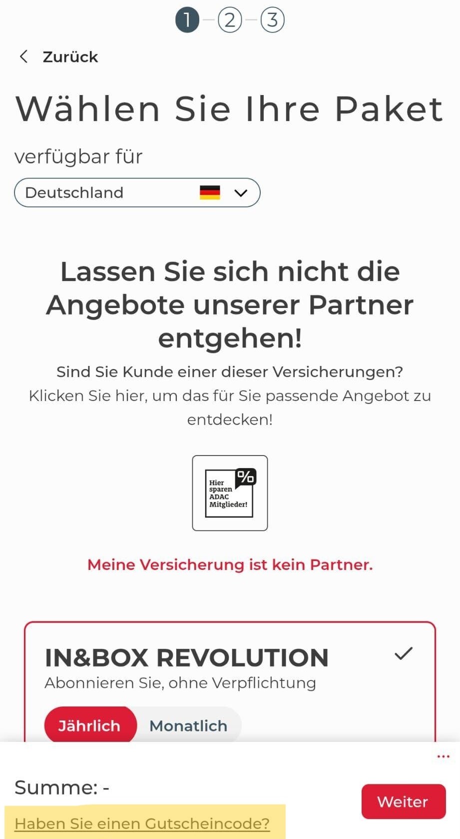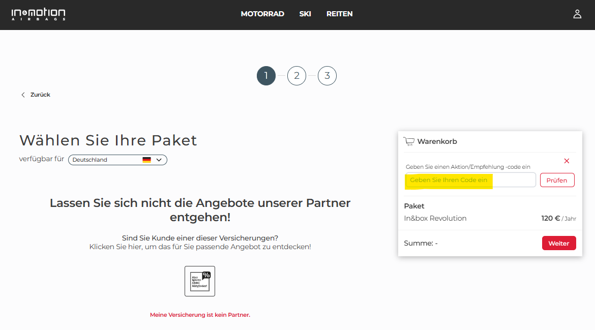 - Promo-Code für Versicherungen: Promo-Codes für Versicherungen sind ausschließlich für neue Mitglieder reserviert. Wenn Sie bereits Mitglied sind, können Sie von diesem Rabatttyp nicht profitieren. Nach der erfolgreichen Anmeldung können Sie keinen Versicherungs-Promo-Code mehr eingeben.
