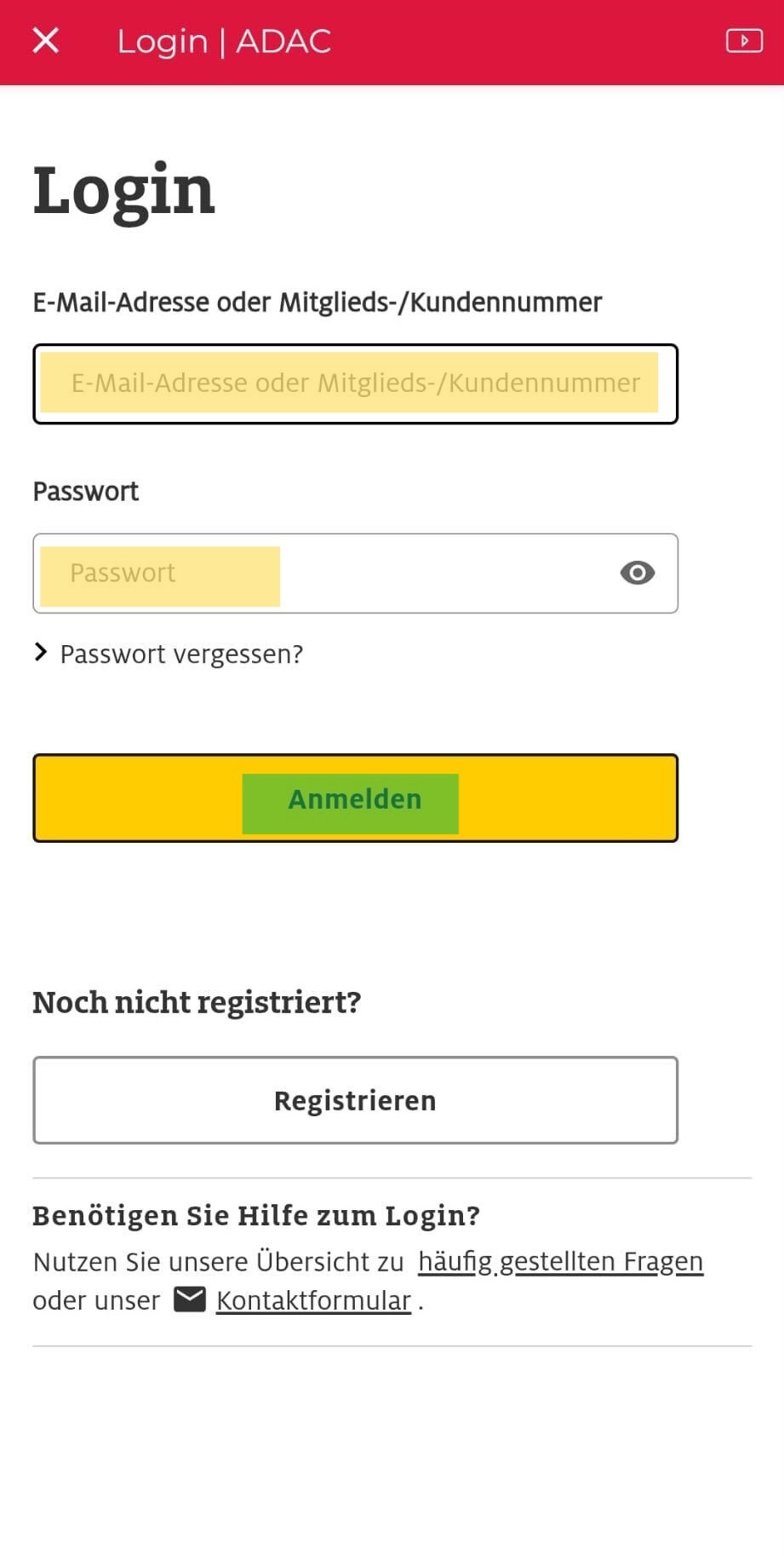 Wählen Sie die Versicherung, bei der Sie Mitglied sind, füllen Sie die erforderlichen Felder aus und aktivieren Sie das Kästchen „Ich akzeptiere die Bedingungen des Angebots“, wie unten dargestellt: